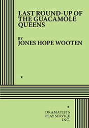 THE STORY: In this deliciously funny Southern-fried comedy, the Verdeen cousins of Sweetgum, Texas — Gaynelle, Peaches, and Jimmie Wyvette — are up against the clock as they frantically attempt to produce the ultimate high school reunion before the old building is demolished. But they’ve got a bushel of obstacles to overcome before they can pull off this miracle: Gaynelle is reeling from the humiliating demise of her loathed ex-husband; Peaches’ romantic life has tanked because the older her dates get, the more horrified they are by her job as a mortuarial cosmetologist; and Jimmie Wyvette is trying to live down her on-camera catfight with a local televangelist. To top it all off, the cousins have got to impress a governor’s aide with their party-planning capabilities, so that they can nab the plum job of throwing the governor’s birthday bash — and keep their business afloat. Their scramble to prepare the perfect event is interrupted by the exploits of their beloved Uncle Aubrey, who is in danger of getting throttled by the two octogenarian sisters he’s simultaneously romancing, and by threats from their self-righteous Aunt LaMerle, who is determined to be crowned the final and forever Guacamole Queen of Sweetgum High. And that’s before one of Peaches’ former classmates arrives with a malevolent hand puppet and a score to settle, Jimmie Wyvette hog-ties the sherrif with police tape, the high school gym is blown away, and the desperate battle for Guacamole Queen heats up into an outrageous fight to the finish. Chaos is side-splittingly achieved! A gut-busting Jones Hope Wooten farce — and a stand-alone play in its own right — LAST ROUND-UP OF THE GUACAMOLE QUEENS is the third and final comedy in the Verdeen Cousins Texas Trilogy that begins with